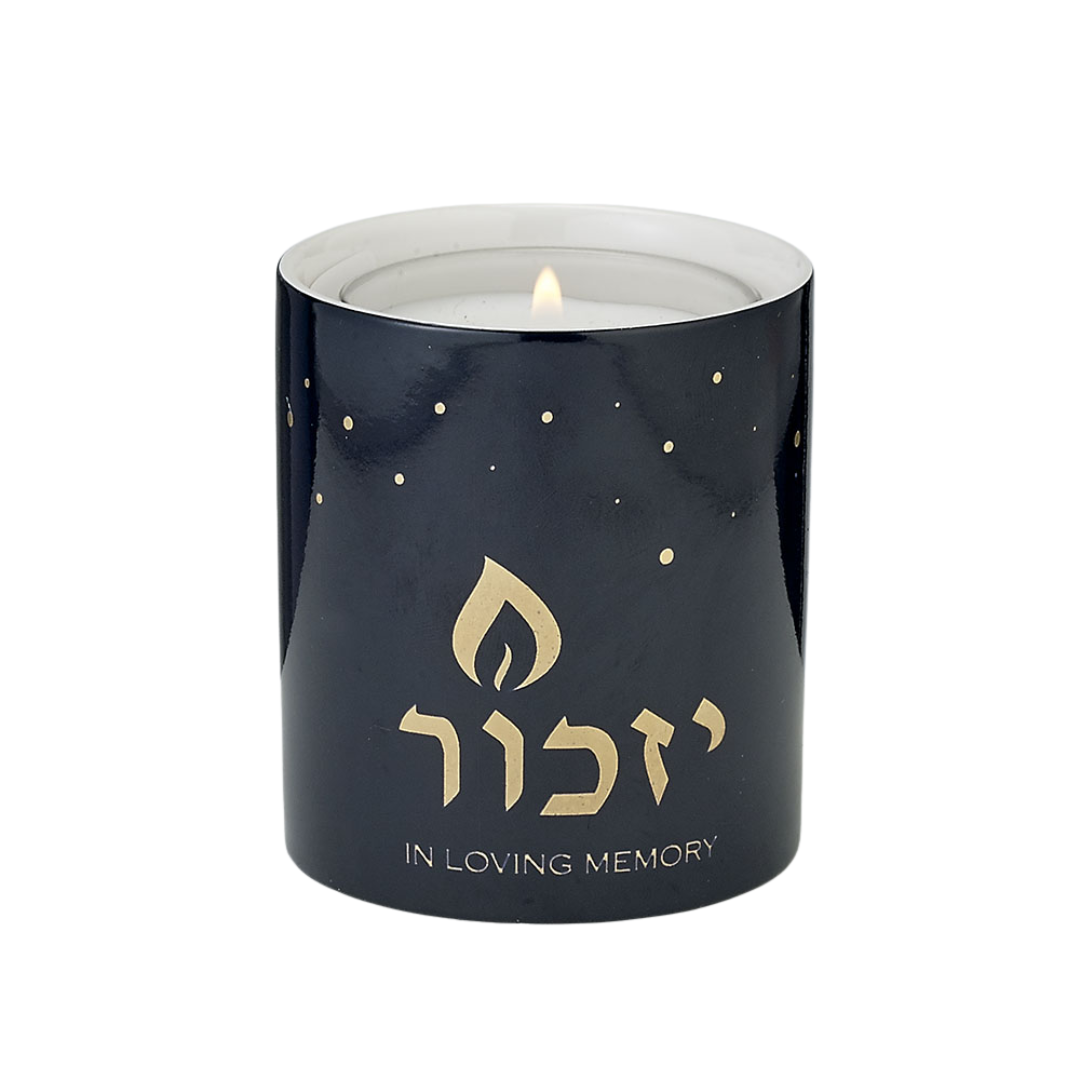 In Judaism on the anniversary of a loved one’s passing you are to light a 1 day Yizkor candle. Yizkor is Hebrew for remember. Sending a Yizkor candle is a thoughtful gift that can be used year after year, the Yizkor Luminaria with gold accents is the perfect item to send.