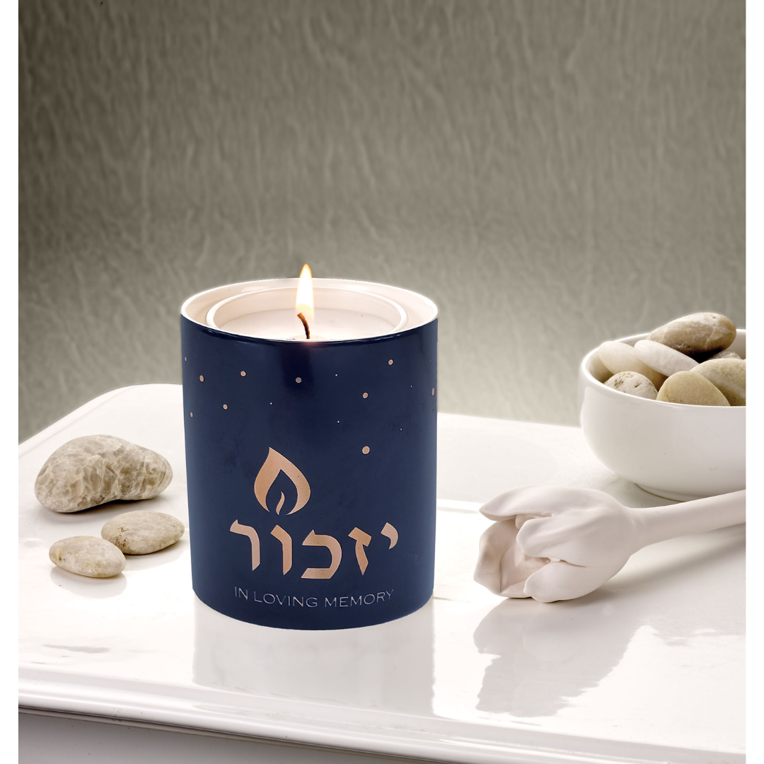 This set included the traditional 1 day Yizkor candle and a ceramic Luminaria that can be used year after year to help their memory live on.